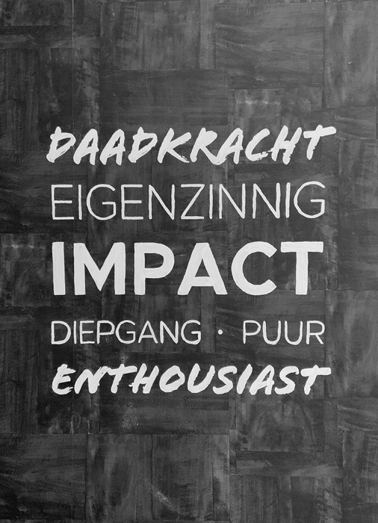 Tip: maak je kernwaarden zichtbaar voor je personeel. Schrijf ze bijvoorbeeld op de muur. Zo enthousiasmeer je jouw medewerkers om deze waarden uit te dragen in alles wat ze doen. Dat leidt niet alleen tot een sterkere merkidentiteit, maar ook tot een krachtige boodschap naar je klant toe.