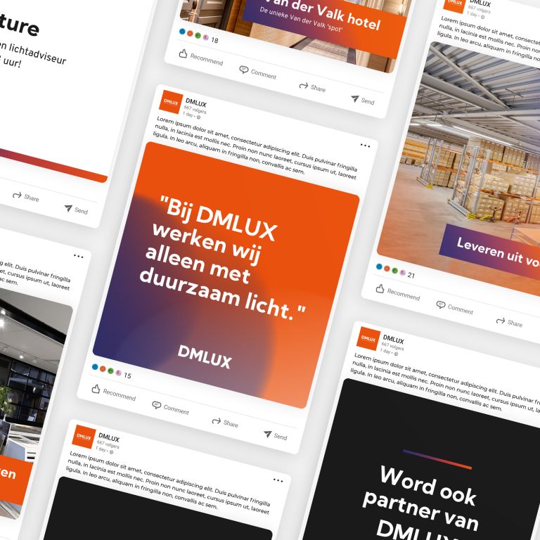 Een bijdrage leveren aan een betere wereld én de betrouwbare partner zijn op gebied van functionele verlichtingsoplossingen, dat is het doel van DMLUX. Hoe je dit vermarkt? Door een pakkend, menselijk merkverhaal te schrijven als basis voor alle communicatie en dit op te volgen met een passende huisstijl. Laat je inspireren!