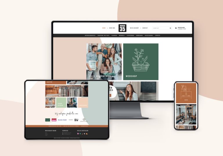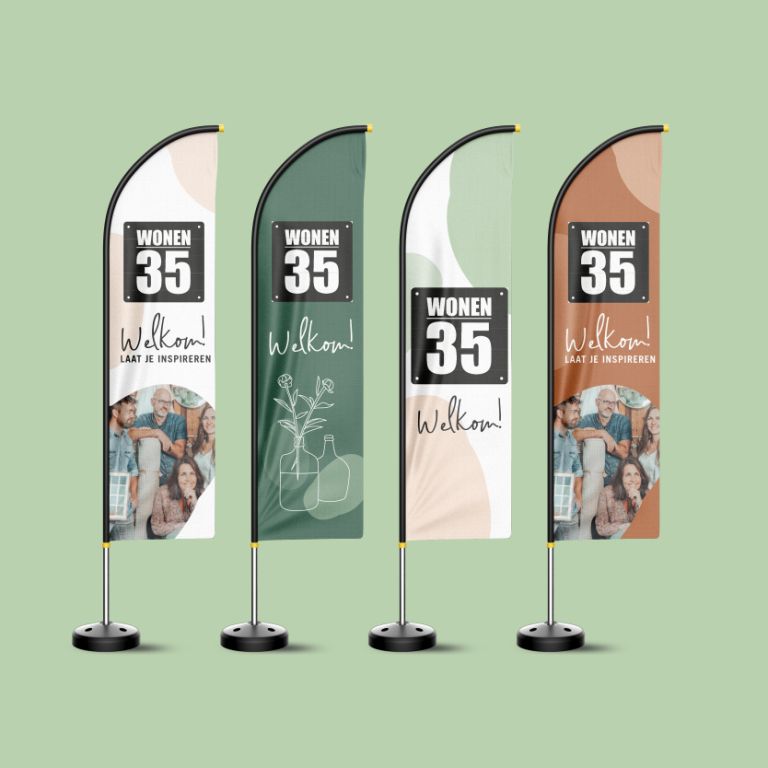 De huisstijl van Wonen 35 was toe aan een upgrade, daarom gingen wij aan de slag met een verfrissende look! We kozen een zacht en warm kleurenpalet, volledig passend bij de toegankelijke uitstraling die Wonen 35 wilde creëren. De ronde vormen en met de hand getekende illustraties zorgen voor een speelse twist. We hebben de huisstijl doorgevoerd in een social media template, vlaggen, e-mailhandtekeningen en divers drukwerk.