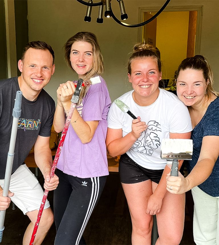 Het was fantastisch om de handen uit de mouwen te steken en iets te kunnen betekenen voor de boerderij. We hebben geholpen met het schilderen van het hart van de zorgboerderij. Tussendoor kwamen de hulpboeren stiekem even loeren wat we aan het doen waren. Samen hebben we gelachen, gezweet en genoten van de prachtige omgeving. We willen Boerderij Buitengewoon hartelijk bedanken voor deze mooie ervaring.